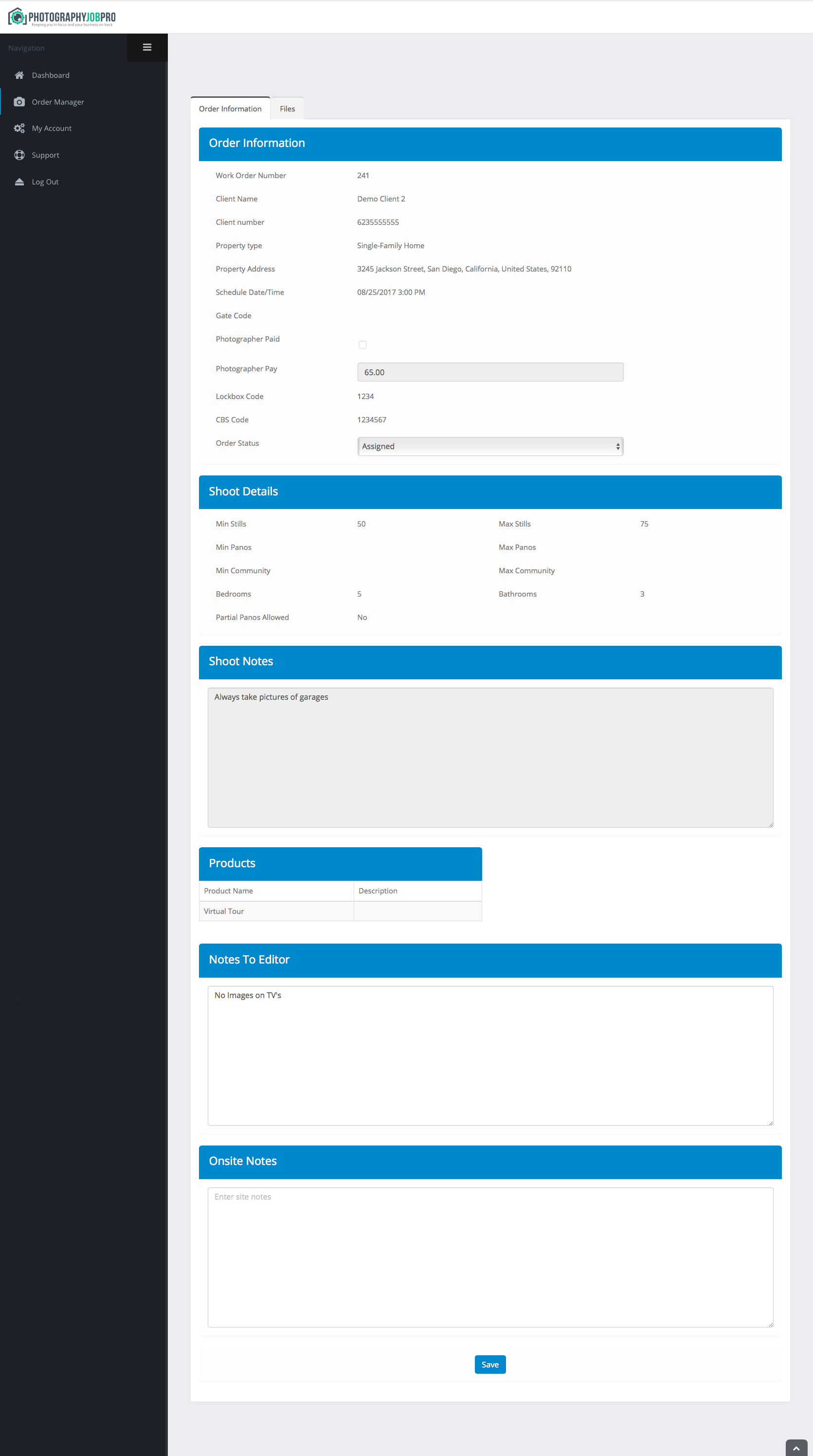 Photography Job Pro allows photographers the ability to have their own dashboard that is also mobile friendly. Once you have set someone up as a photographer they will be able to: